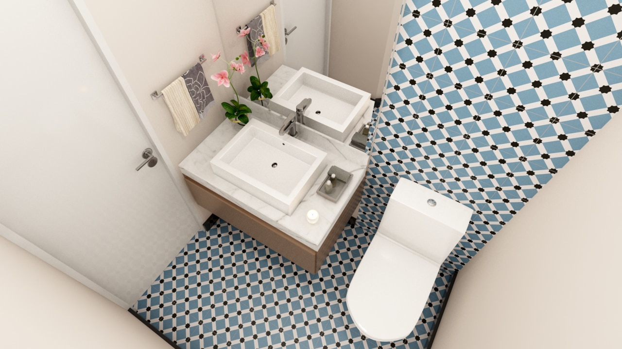 Principal y secundarios, pisos y paredes en porcelanato, muebles en MDF, lavatorios, aparatos y griferías de calidad.